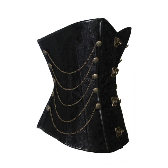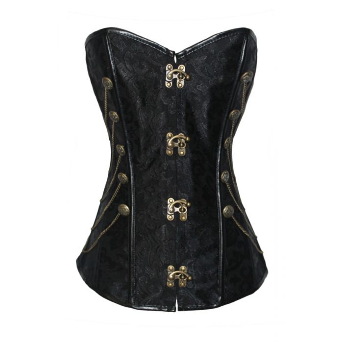 Fully lined, extremely comfortable! This black steampunk corset has an decidedly elegant look by the deluxe fabric well crafted, you will be deeply attracted by the mesmerizing floral pattern all over and decorative chain both sides. Your body top must love the sweetheart bust-line that brings you a sexy cleavage. The buckled front is convenient to dress up this body shaper or take it off. Don’t forget the alluring panty!