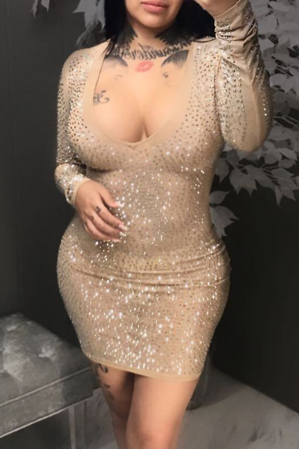 Euramerican U Neck See-Through Sequined Decorative Black Gauze Mini Dress