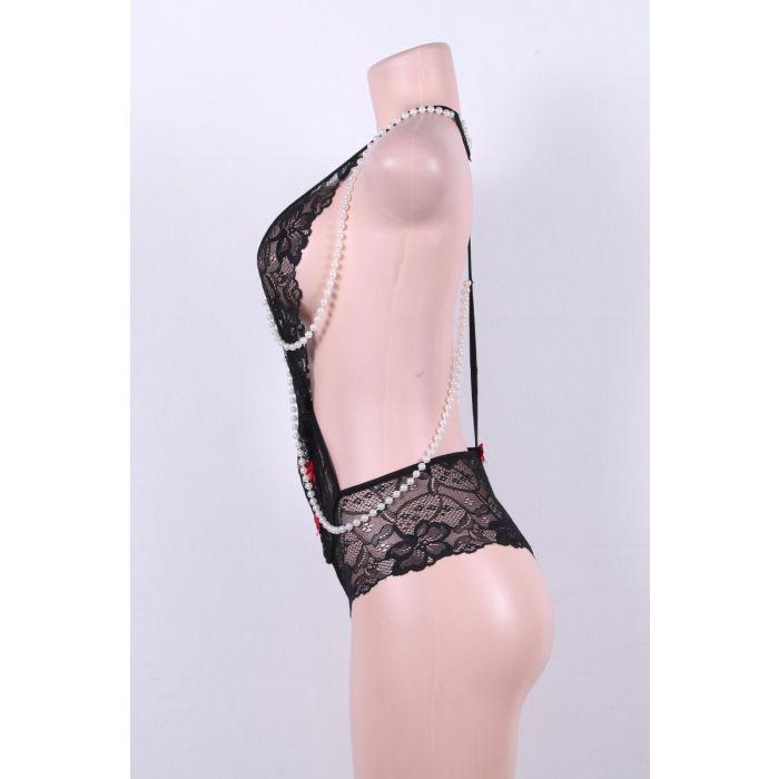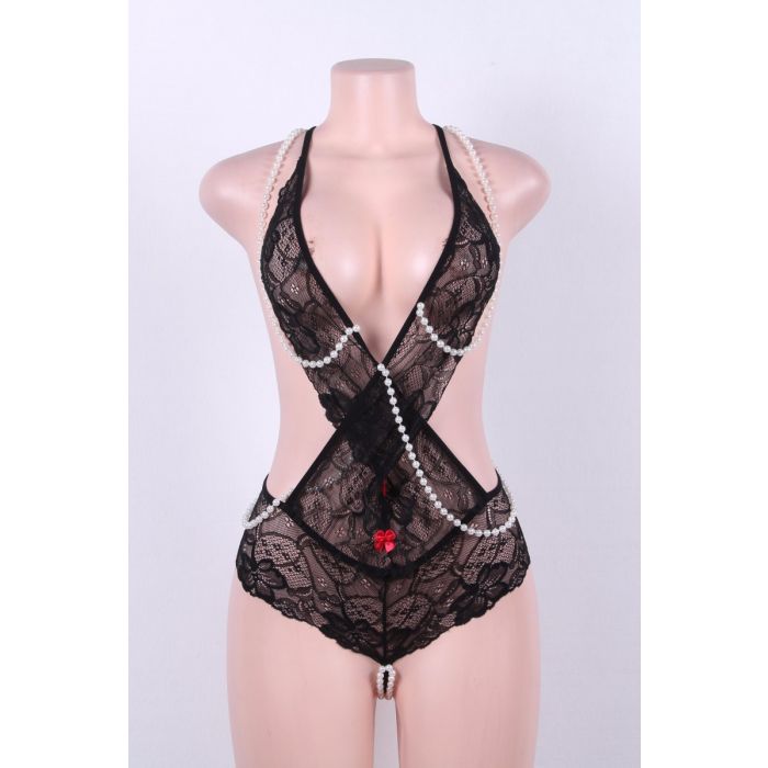 Black Lace Pearl Teddy Sexy Lingerie